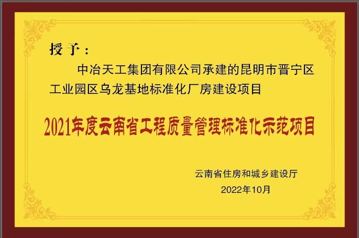 2021年度云南省工程质量管理标准化示范项目——晋宁标化厂房