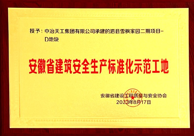 2023-123泗县雪枫家园二期项目-D地块工程安徽省建筑安全生产标准化示范工地(牌匾)